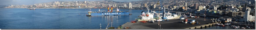 We smoothly picked up speed and soon had quite a wake behind us. Loni is giving it a go without chemical seasickness aids, using only the wrist pressure bands. So far, so good, but we’re not out in open sea just yet. Adios, Valparaiso.